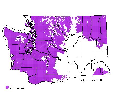Pileated Woodpeckers are uncommon residents in appropriate habitats at low to mid-elevations throughout the state. They are more common in western than in eastern Washington. They can be found even in city parks where large trees are present, and they breed in Seward Park, Discovery Park, and Camp Long (all in Seattle, King County).