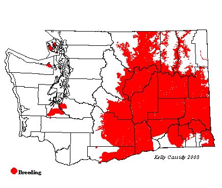 Most occur in the grass, sagebrush, and open Ponderosa pine areas of eastern Washington, but small populations occur in the open prairies around the southern end of Puget Sound and in grassy, weedy areas along salt water. Western Washington populations may be found in Dungeness (Clallam County) (although this population may be extirpated), San Juan Island (San Juan County), the Chambers Lake area, Weir Prairie, and Scatter Creek Wildlife Recreation Area (Pierce and Thurston Counties).